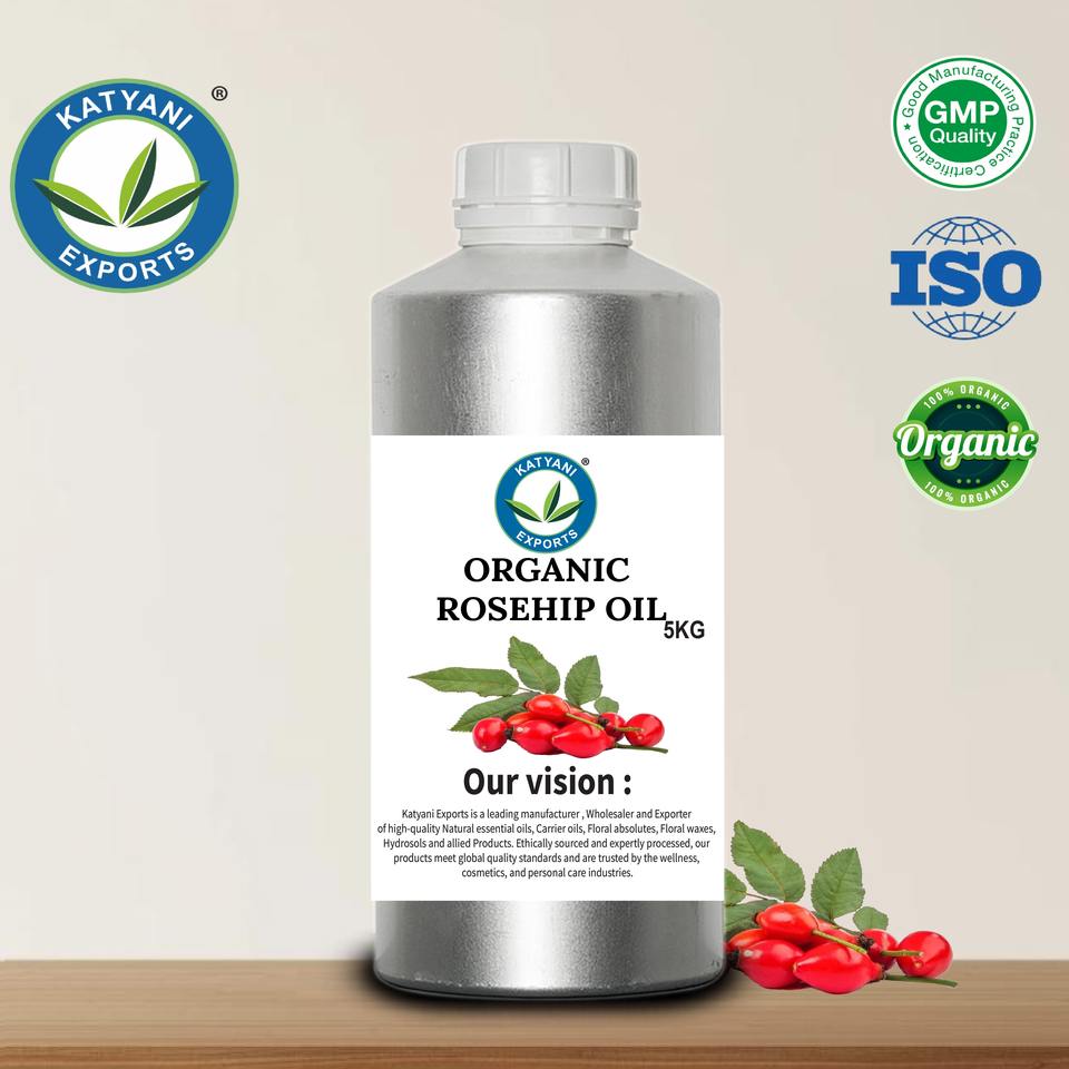 น้ำมันโรสฮิปออร์แกนิคเกรดพรีเมียม (Rosa canina) สกัดเย็น สำหรับเครื่องสำอางและสูตรบำรุงผิว ผู้ส่งออกในอินเดีย