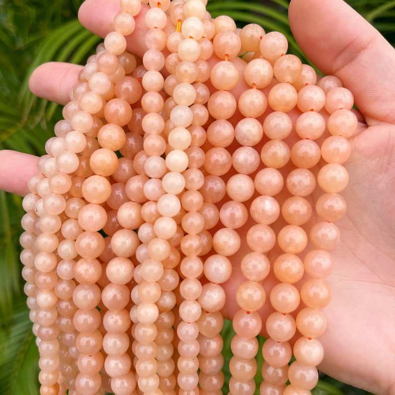 ลูกปัดอะเวนจูรีนสีชมพูชั้นยอดเครื่องประดับทำให้เป็นลูกปัดเรียบรักษาจักระหัวใจการนั่งสมาธิภายในความสงบสมดุลทางอารมณ์ของขวัญพลังงาน