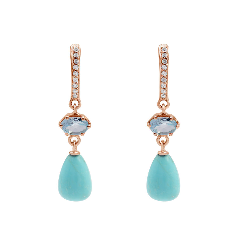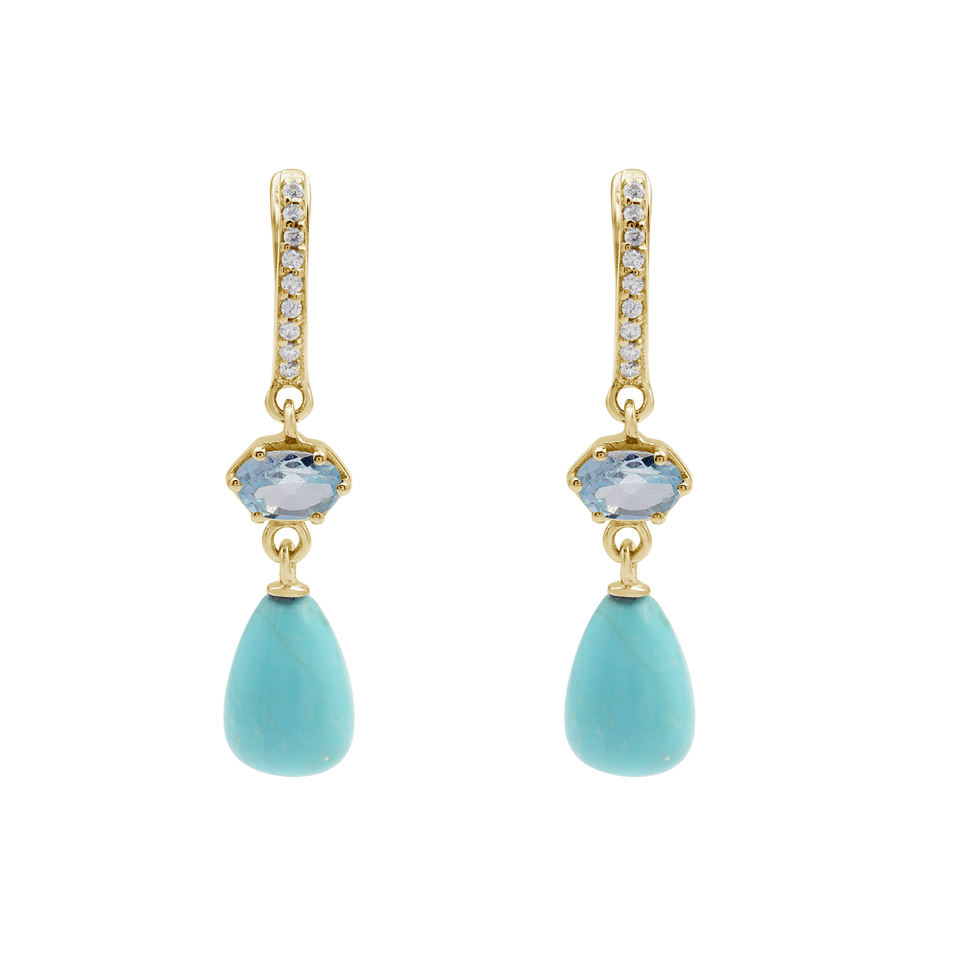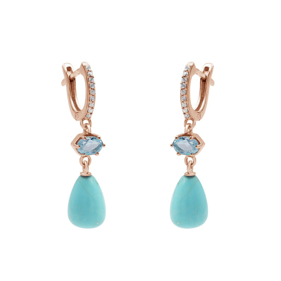 สินค้าเกรดสูง925เงินสเตอร์ลิงสีฟ้าบุษราคัมและพลอยเทอร์ควอยซ์35x8.5x7มม. ต่างหูทรงหยดน้ำและห้อยเครื่องประดับชั้นดี