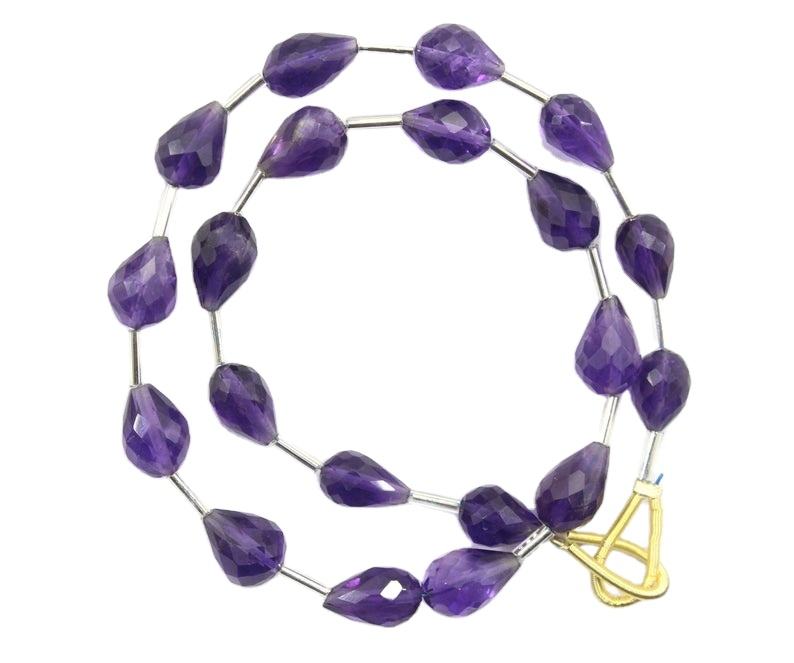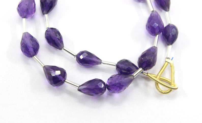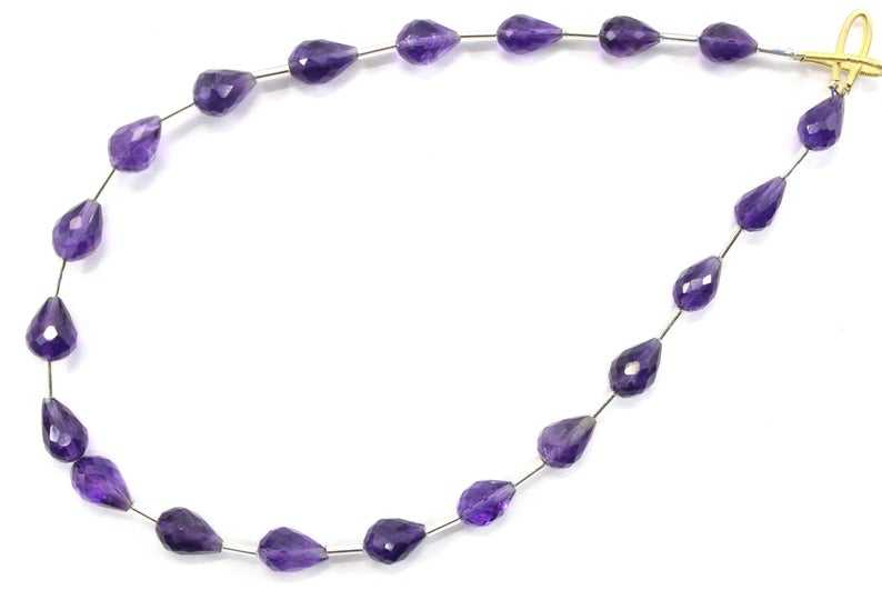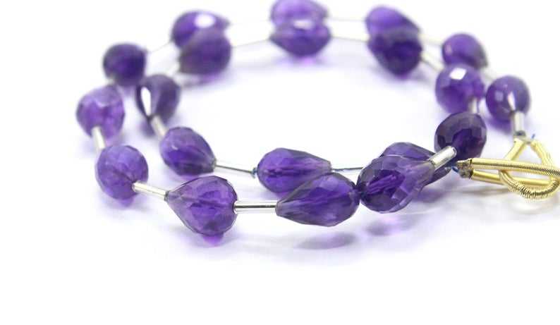 ลูกปัดทรงหยดน้ำตาแบบเหลี่ยม20ชิ้นอัญมณีอเมทิสต์ธรรมชาติสีฟ้า1เส้น