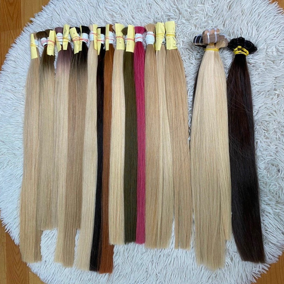ผมต่อทำจากเส้นผมของคนผมแท้สีบลอนด์สำหรับต่อผมมนุษย์ผมดิบเกรดชั้นนำเวียดนามจำนวนมาก