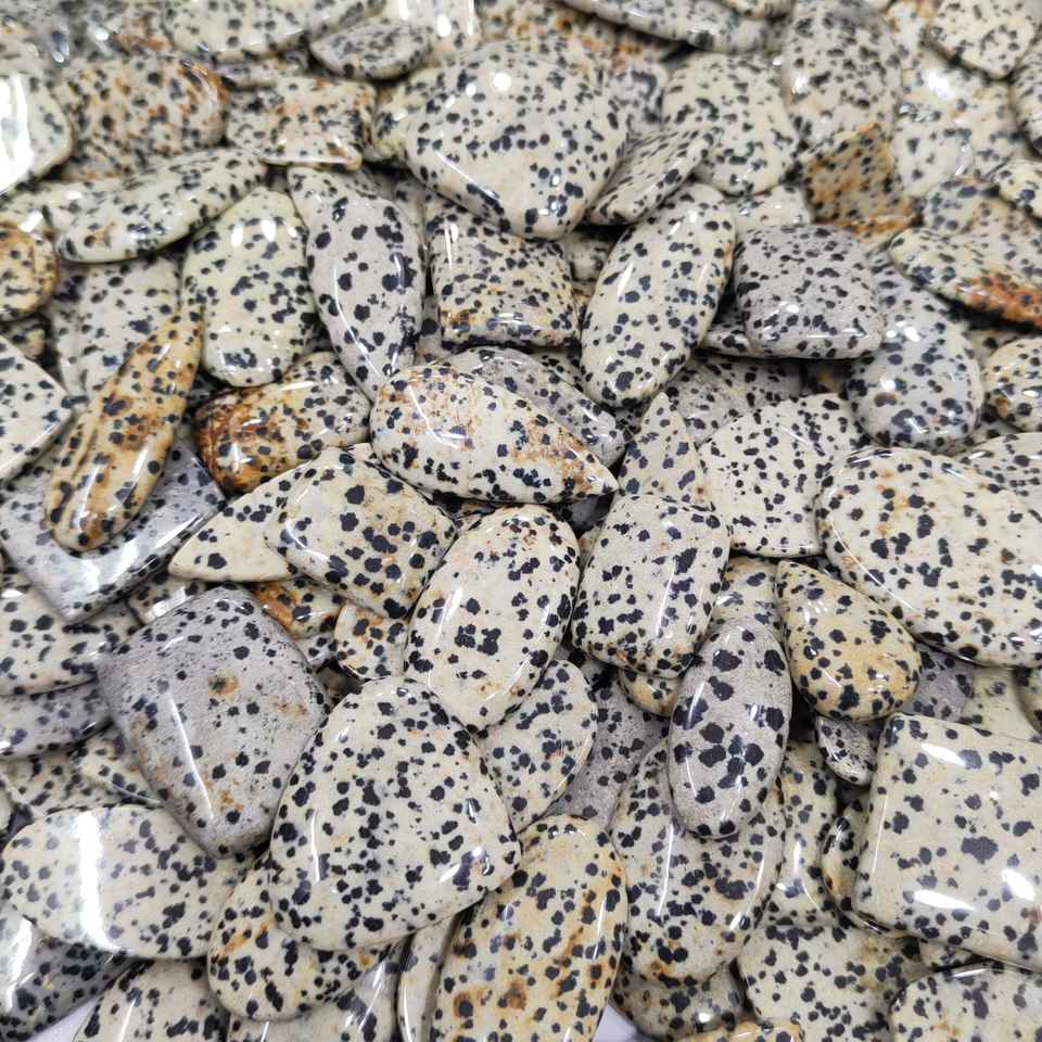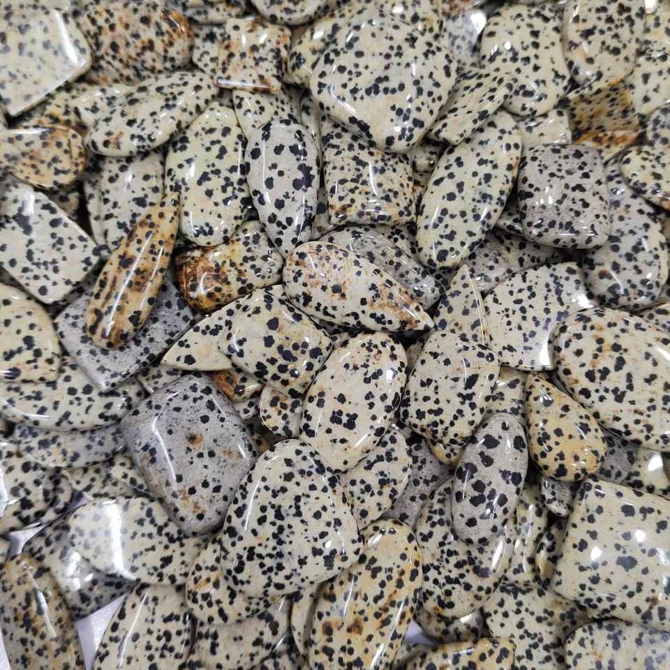 พลอยแจสเปอร์ดัลเมเชียนธรรมชาติคุณภาพสูง เกรดท็อป รูปทรงหลากหลาย สำหรับทำเครื่องประดับและขายส่ง
