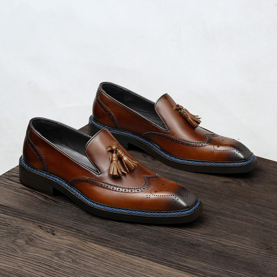 รองเท้าหนังวัวแท้แบบอ็อกซ์ฟอร์ด พร้อมส้นรองรับแรงกระแทกและดีไซน์กันลื่น รองเท้าหนังสำหรับสุภาพบุรุษ