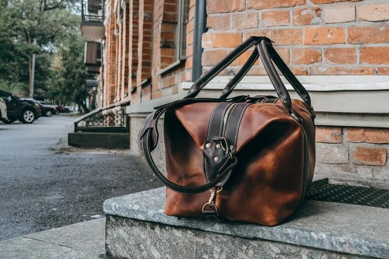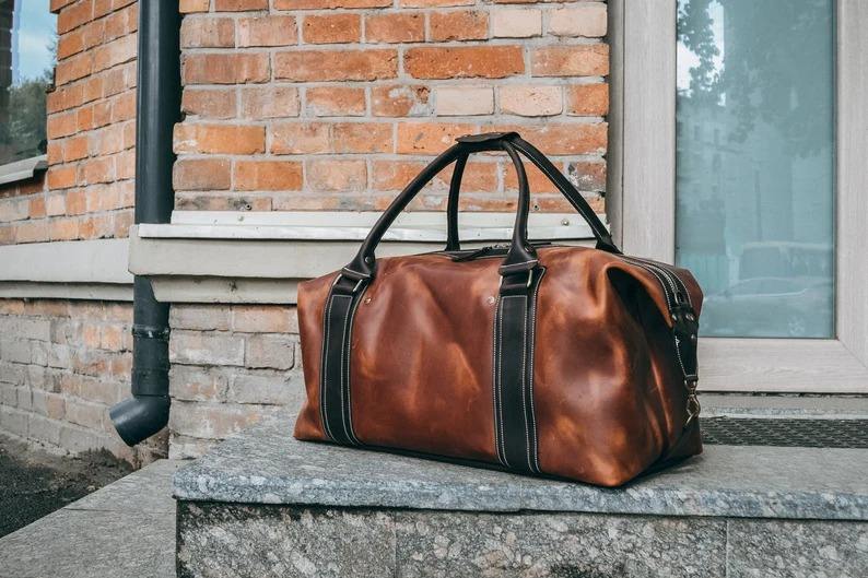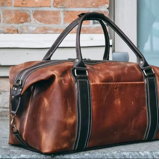 กระเป๋าหนังแท้ทรงดัฟเฟิล สไตล์เรียบง่าย สำหรับเดินทางช่วงสุดสัปดาห์ ขนาดใหญ่ น้ำหนักเบา แบบวินเทจ พร้อมซิป รุ่น LDB-0342