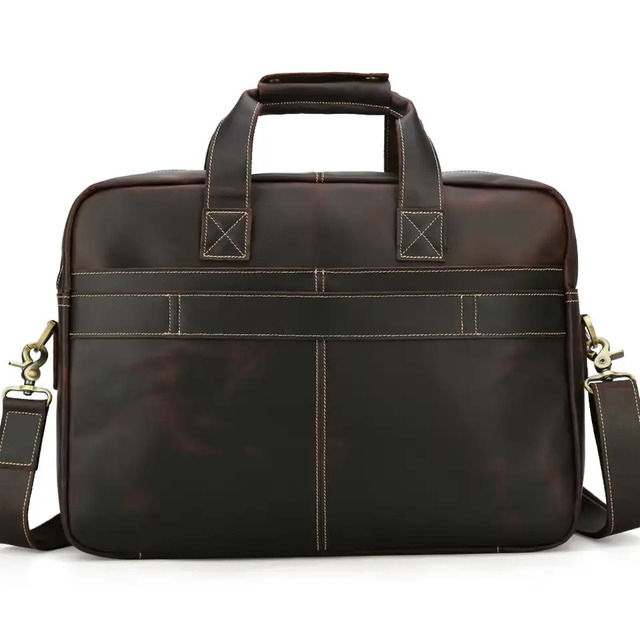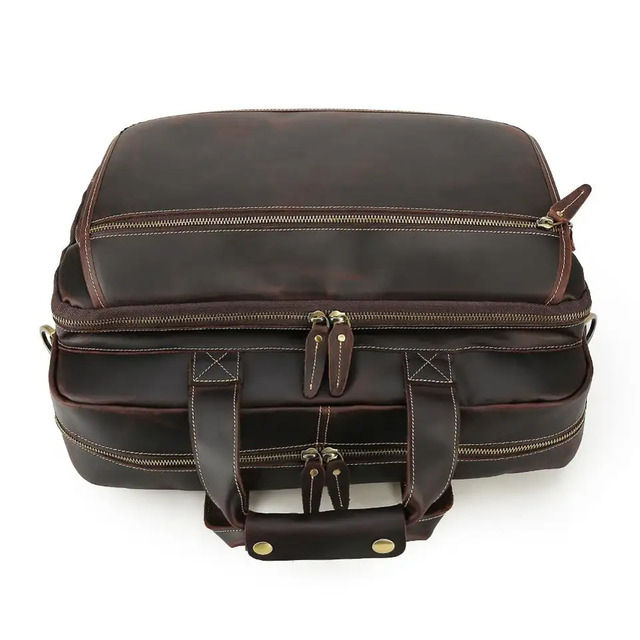 กระเป๋าเอกสารหนังวัวแท้สำหรับเดินทาง17นิ้วหนังวัวแท้ซิปความจุขนาดใหญ่แนววินเทจ