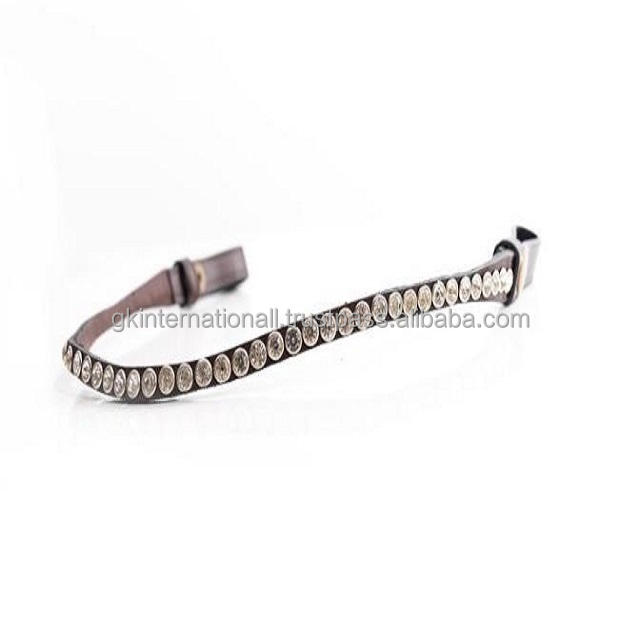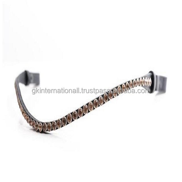 สายหนังวัวด้านบนฮาวานาหรือหนังสีดำรูปม้าคิ้วพร้อมคริสตัลขนาดใหญ่สีทอง1แถวแฮนด์เมดวงดนตรีที่กำหนดเอง