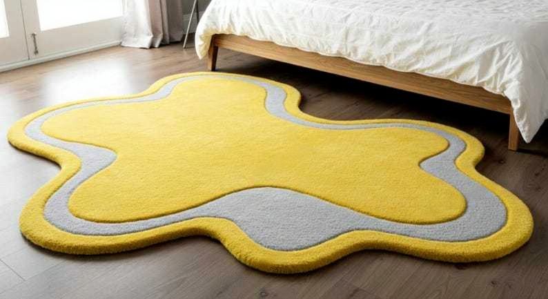 พรมลายคลื่นสีเหลืองประดับมือบนขนาด8x9พรมดินเผาเนื้อนุ่มดีไซน์นามธรรมสำหรับห้องนั่งเล่นหรือห้องนอน