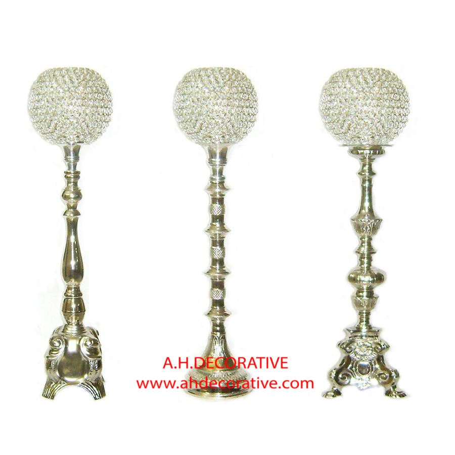 ตกแต่งด้วยลูกบอลคริสตัลสีขาวและก้านด้วยแท่งเทียนสำเร็จรูปสีทองราชวงศ์และฐานทำด้วยมือ