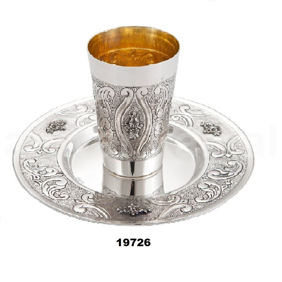 ถ้วยคิดดูชทองเหลืองชุบเงิน ดีไซน์สลักคุณภาพสูง พร้อมถาด