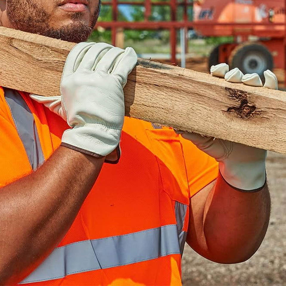 ถุงมือนิรภัยหนังคุณภาพสูงชั้นนำถุงมือขับขี่หนังวัวสวมใส่สบายเพื่อความปลอดภัยของมือถุงมือหนังวัวสำหรับขับขี่