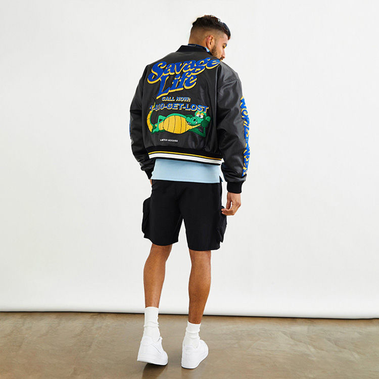 Top High Quality Streetwear Style High Quality PU Leather Bomber Embroidery Letterman Jacket Boxy Badge Varsity Jacket Men