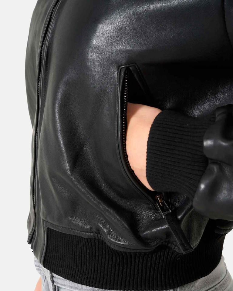 แจ็กเก็ตหนังสีดำสำหรับผู้ชายแจ็คเก็ต Napa แกะแท้ติดซิปด้านข้างแจ็คเก็ตหนังระบายอากาศ