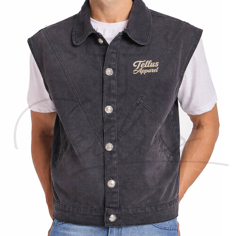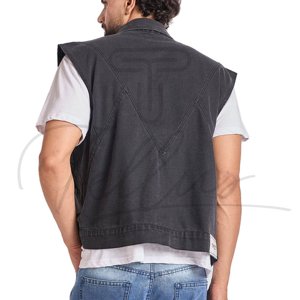 เสื้อกั๊กยีนส์แขนกุดลำลองขายดีสำหรับผู้ชาย และเสื้อแจ็คเก็ตยีนส์แขนกุดสีพื้นระบายอากาศได้ดี