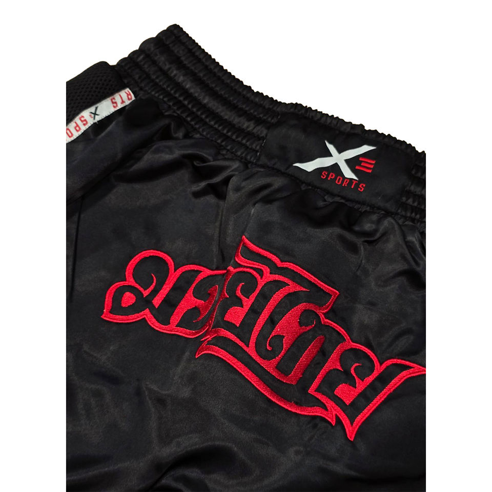 กางเกงฝึกซ้อมมวยไทยยูนิเซ็กซ์ ยี่ห้อ Top Jiu Jitsu โลโก้ด้านหน้า แห้งเร็ว ระบายอากาศได้ดี ผลิตจากผ้าสแปนเด็กซ์/โพลีเอสเตอร์ 240 กรัม รับผลิตแบรนด์ BJJ ตามสั่ง