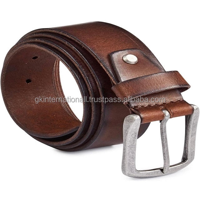 เข็มขัดลำลองหนังวัวหนังแท้สำหรับผู้ชายเข็มขัดหนังแท้สีน้ำตาลพร้อมหัวเข็มขัดทองเหลืองสีเงินโบราณแบบปรับขนาดได้
