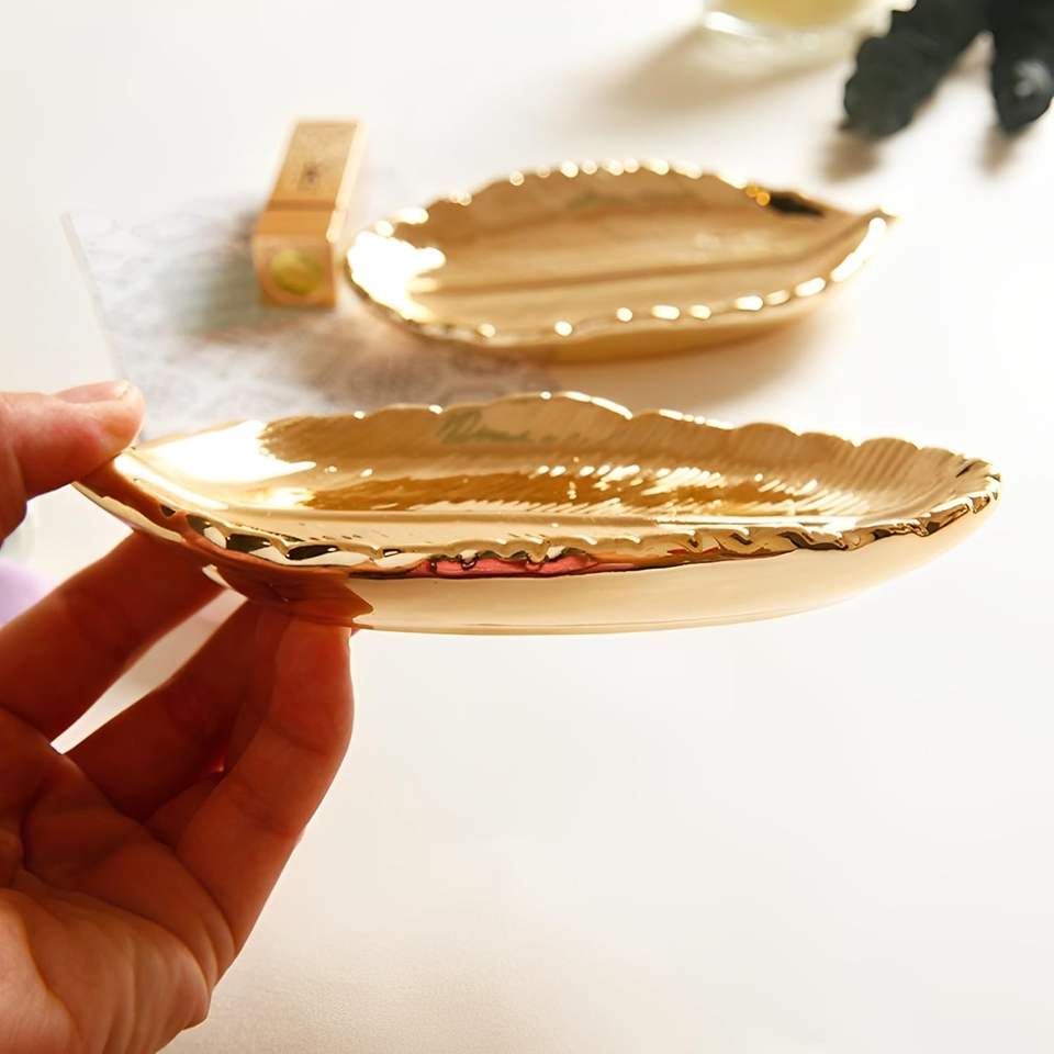 ชื่อผลิตภัณฑ์:ถาดใส่ใบไม้สีทองสำหรับจานเครื่องประดับ
