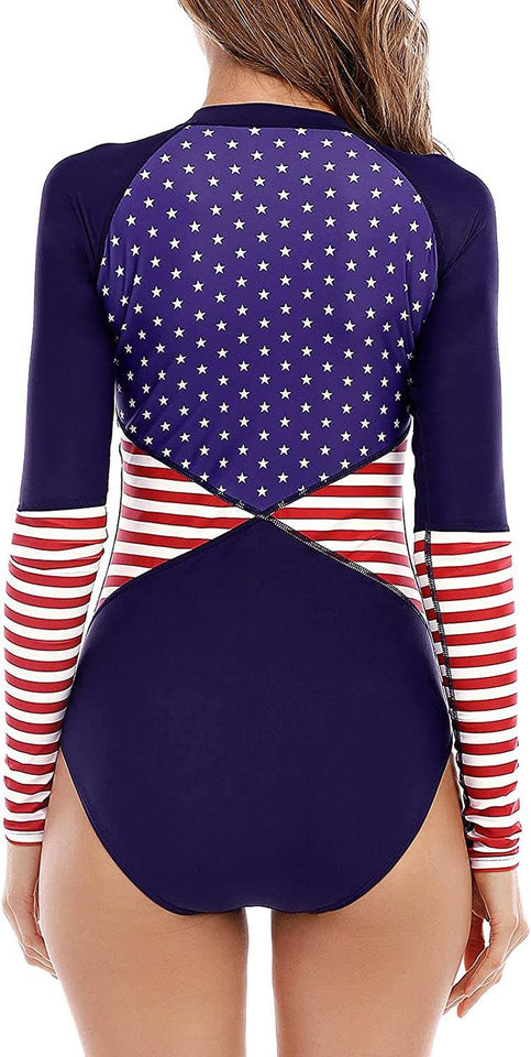 ชุดว่ายน้ำผู้หญิงสุดหรูสั่งทำพิเศษขายส่งปี 2026 ป้องกันรังสียูวี แห้งเร็ว ผ้ายืดสแปนเด็กซ์/โพลีเอสเตอร์ ซิปยาว แขนยาว พิมพ์ลายด้วยความร้อน