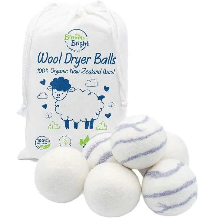 เครื่องเป่าลูกบอลขนสัตว์ออร์แกนิค6ชิ้น XL ทำมือฉลากส่วนตัวจากสหรัฐอเมริกา