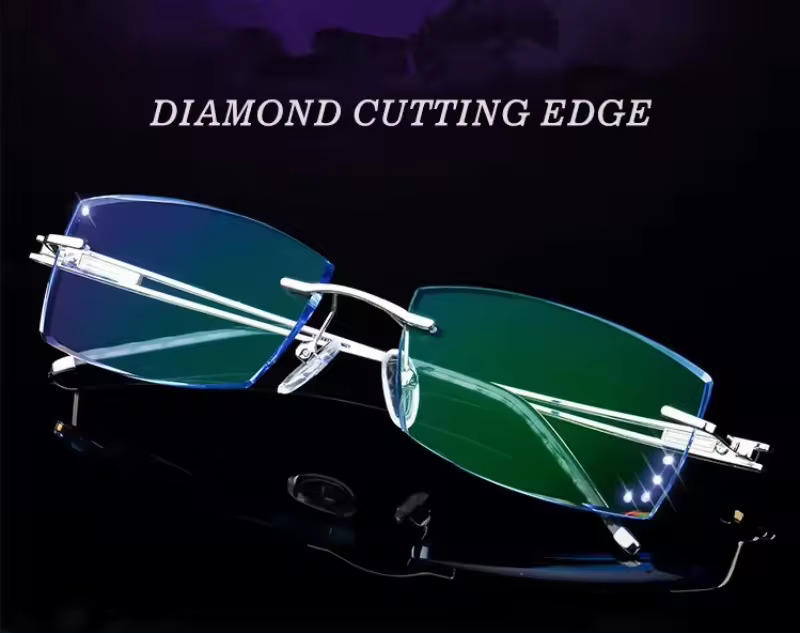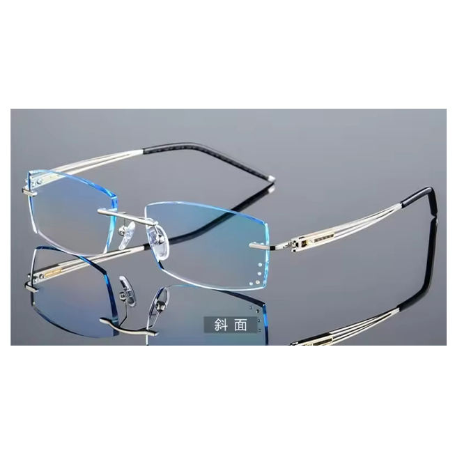 แว่นตาออปติคอลตามใบสั่งแพทย์ทรงสี่เหลี่ยมผืนผ้าตัดเพชรแบบไร้ขอบ