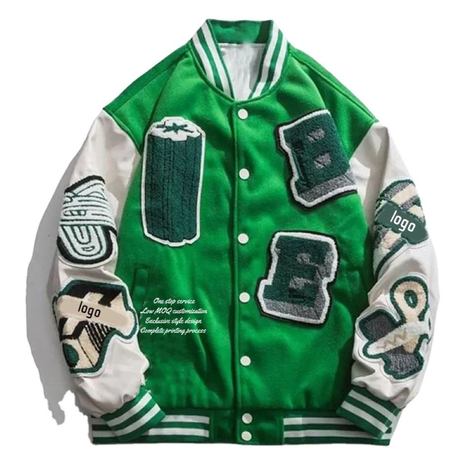 เสื้อแจ็กเก็ตผ้าแคนวาสของผู้ชายเสื้อแจ็กเก็ตผ้าแคนวาสรูปตัว2024ขนแกะปักลายตัวอักษร