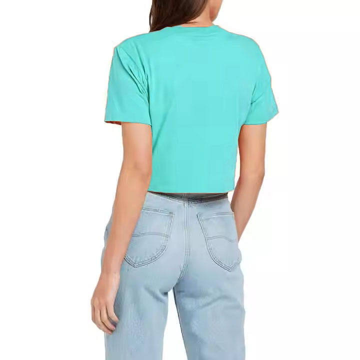 เสื้อผ้าออกกำลังกายผู้หญิงสีฟ้าอควอมอินเทรนด์ทันสมัย แขนสั้น กระชับรูปร่าง แบบสั่งทำพิเศษ เหมาะสำหรับทำงานและกิจกรรมกลางแจ้ง