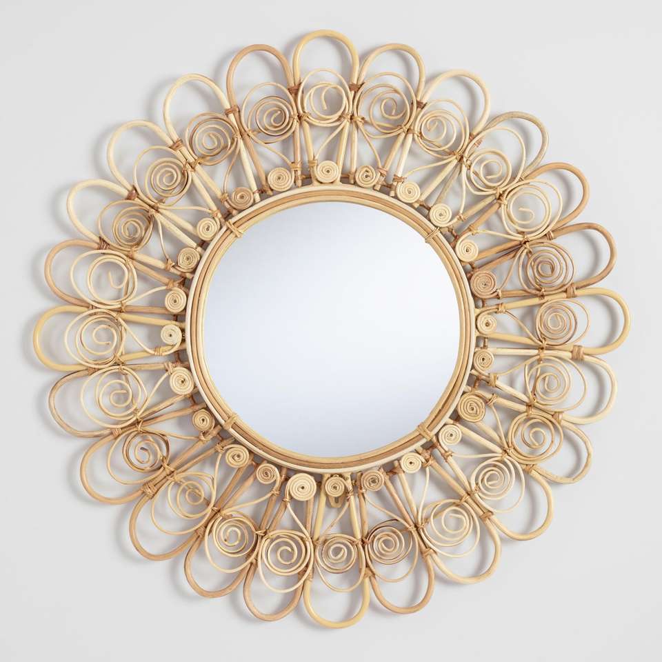 กระจกทรงกลมขนาดเล็กทำจากไม้ไผ่หวายติดผนังเฟอร์นิเจอร์ห้องนั่งเล่น