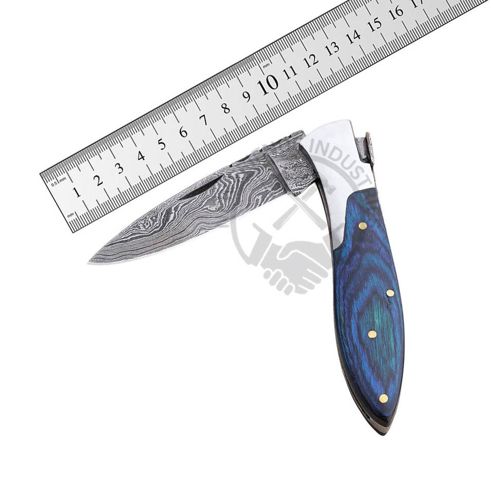 มีดพับดาบัสกัสทำมือรุ่นใหม่ล่าสุด ด้ามไม้ปักก้าสีน้ำเงิน ดีไซน์เฉพาะตัว คุณภาพเยี่ยม เหมาะสำหรับการเอาตัวรอดและการล่าสัตว์