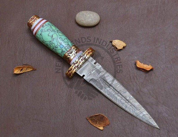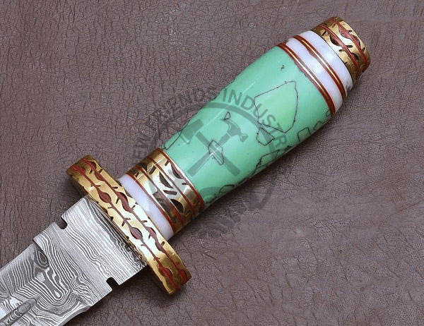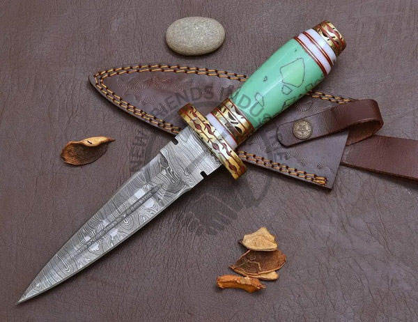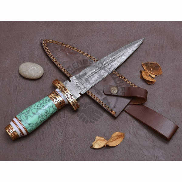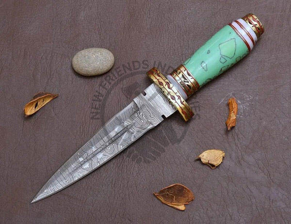 มีดใบตายแบบใหม่ล่าสุด ตีขึ้นรูปด้วยมือจากเหล็กดามัสกัส พร้อมด้ามเรซิ่นสีเขียว มีดสะสมที่ดีที่สุด มีดเอาตัวรอด มีดล่าสัตว์