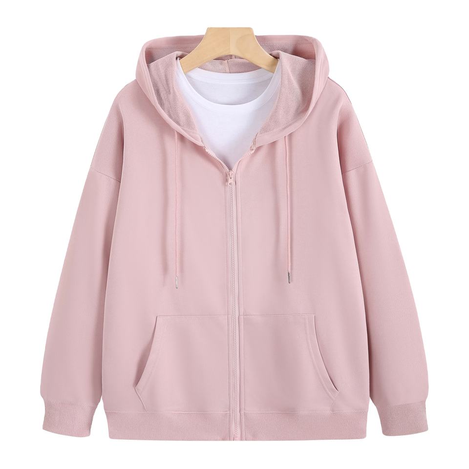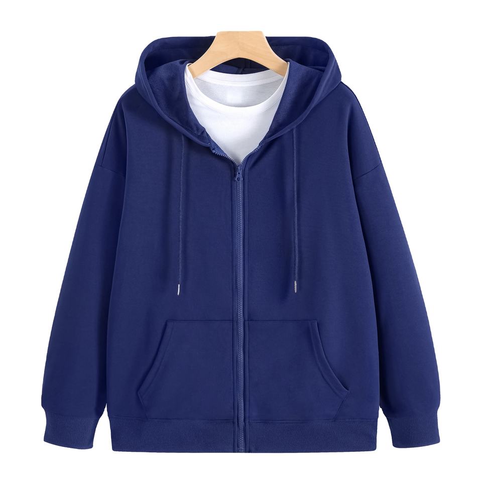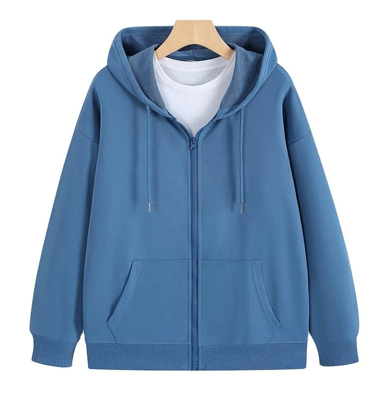 เสื้อสเวตเชิ้ตมีฮู้ดทำจากผ้าฝ้าย100% 260Gms ปักลายมีซิปทรงหลวมสำหรับฤดูหนาว