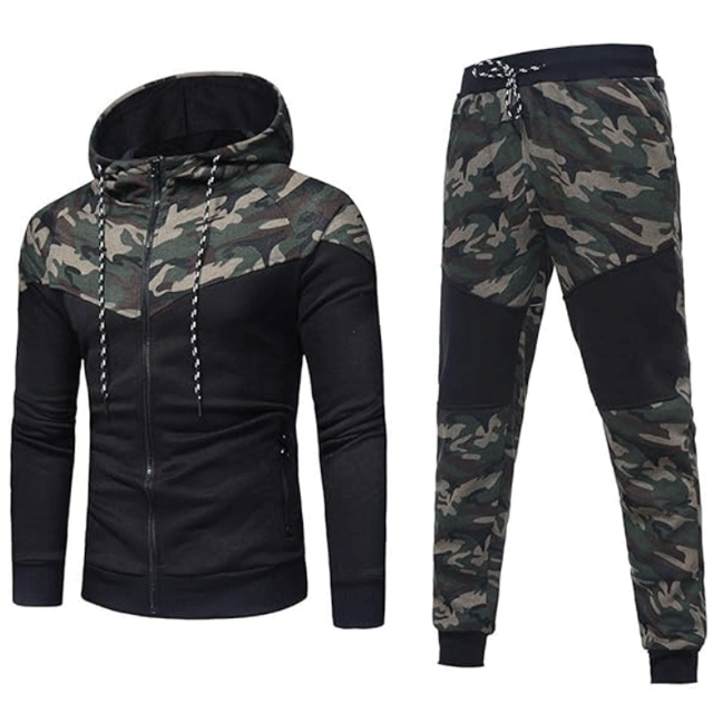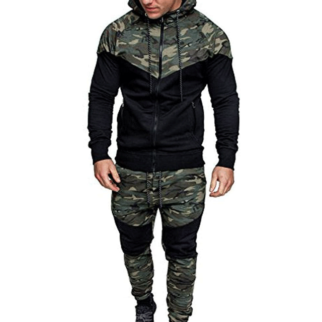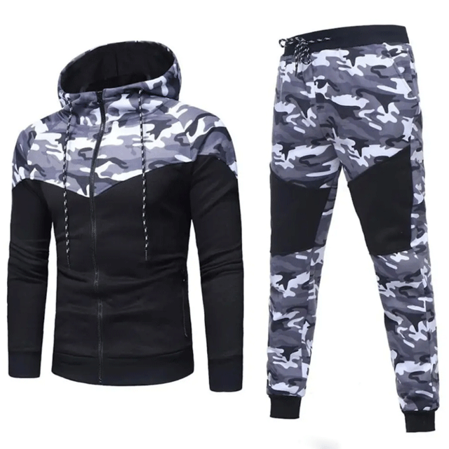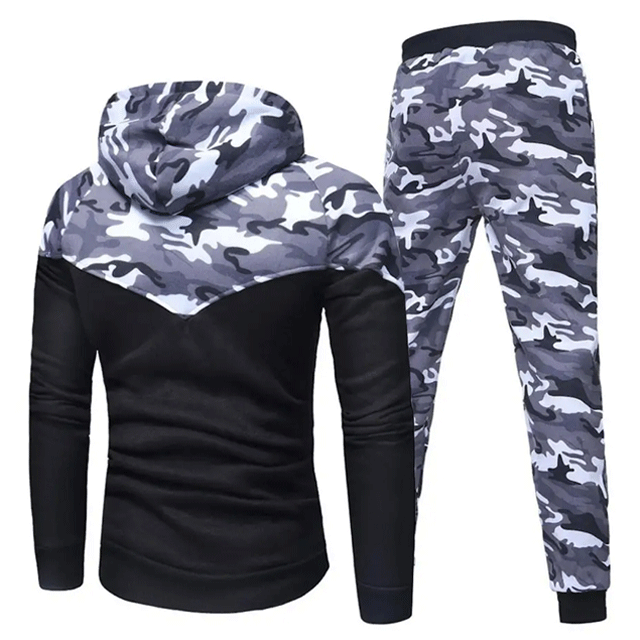 ชุดวอร์มเทรนดี้สุดเท่ สีเทาลายพราง พิมพ์ลาย สำหรับผู้ชาย ผ้าฝ้ายหนานุ่ม ระบายอากาศได้ดี กันลม พร้อมฮู้ดดี้และกางเกงจ็อกเกอร์