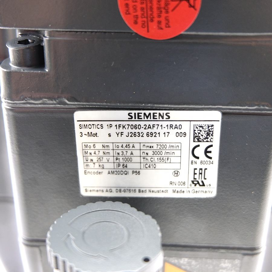 เซอร์โวมอเตอร์แบบซิงโครนัส1FK7 1FK7060-2AF71-1RA0 Siemens ความแม่นยำสูงสำหรับสายระบบอัตโนมัติในอุตสาหกรรม