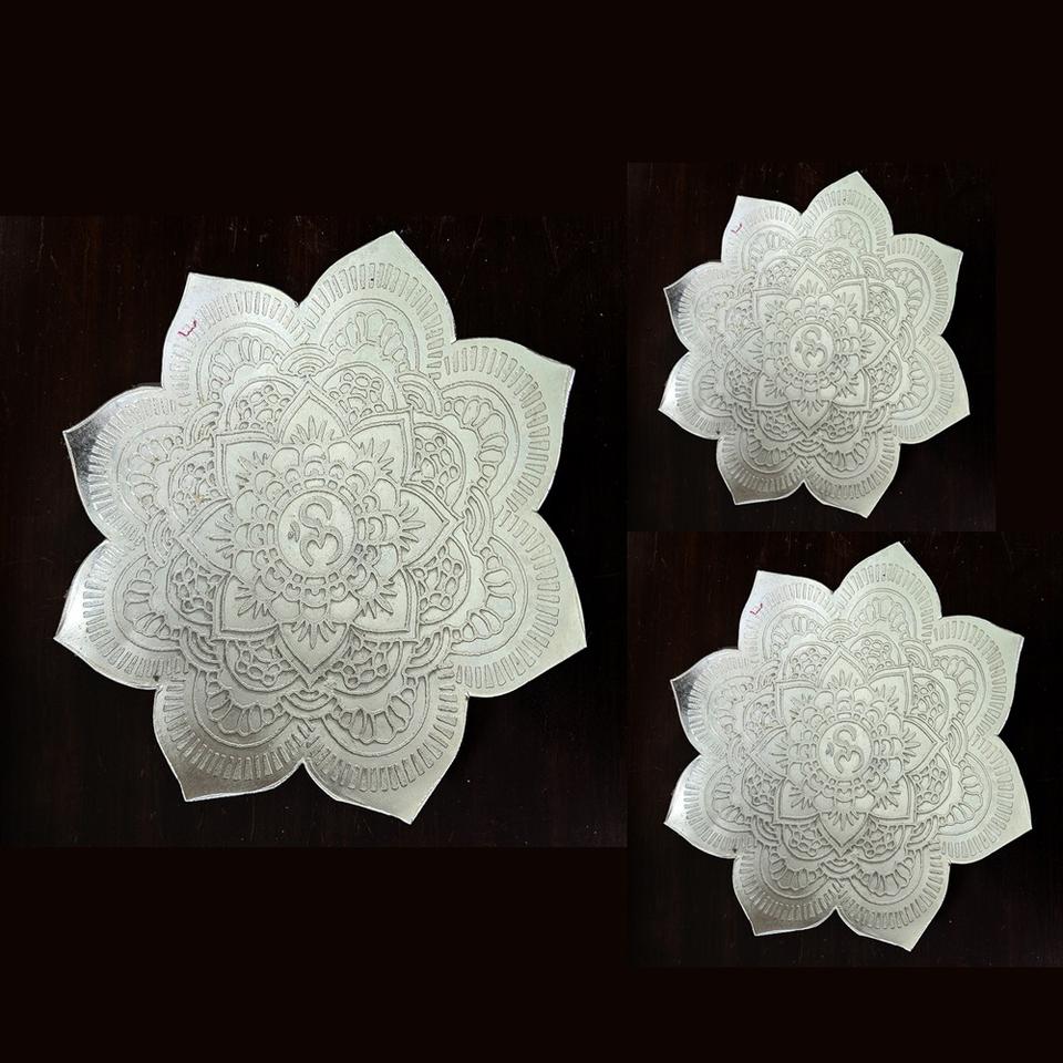 Top On Quality Decorative Handcrafted Iron Om Puja Trays Best for Festive Pooja Return Gifts Floral Design Silver Finish at Bulk