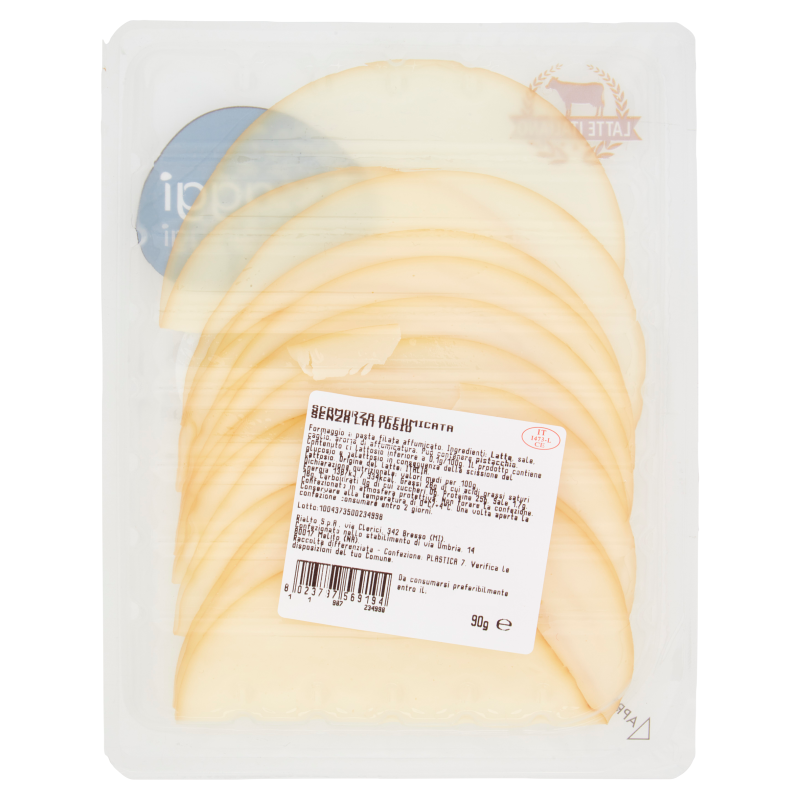ชิ้นของแลคโตสฟรีรมควันอิตาเลี่ยน scamorza