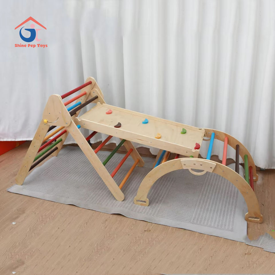 โครงปีนป่ายในร่มยอดนิยม โครงสร้างเล่นสามเหลี่ยมแบบมอนเตสซอรี่ที่ดีที่สุดสำหรับเด็กทารกอายุ 3 เดือน ชุดปิกลเลอร์ส