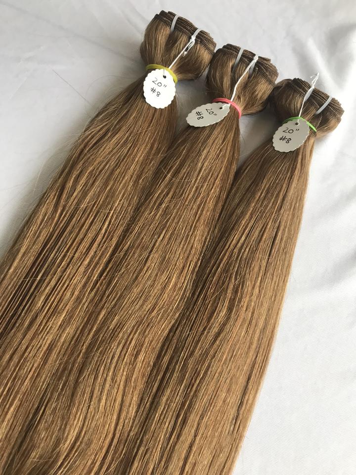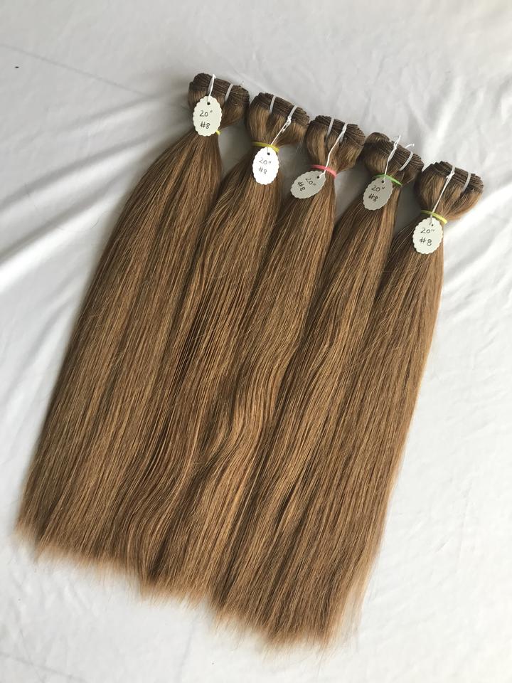 วิกต่อผมมนุษย์แท้เรมี่20 ''มัดตรงคอลอร์ #8เรียงเหมือนผมคนทำจากผม100% บริสุทธิ์