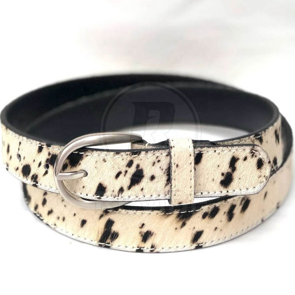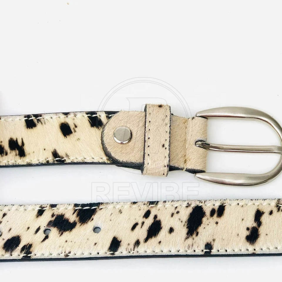 เข็มขัดหนังแท้ประดับขนสัตว์