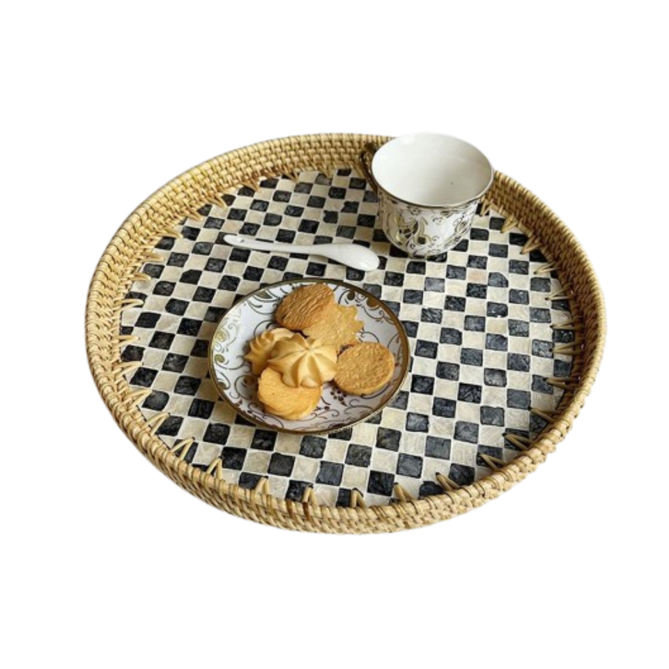 Rattan With MOP Inlaid Round Serving TraysProduct Name