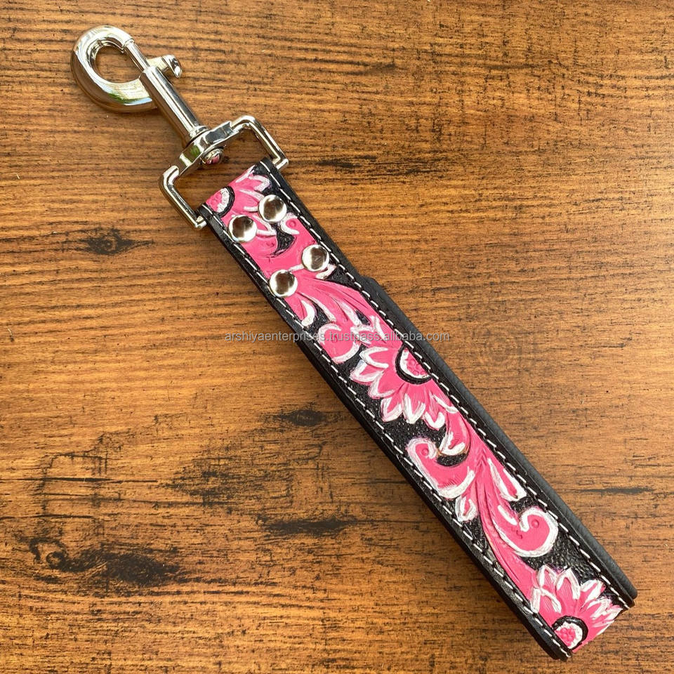 Top Product Wholesale Custom Hand Tooled Leather Traffic Lead Traffic Leash Short Leash for Dog Training Traffic Padded Handle