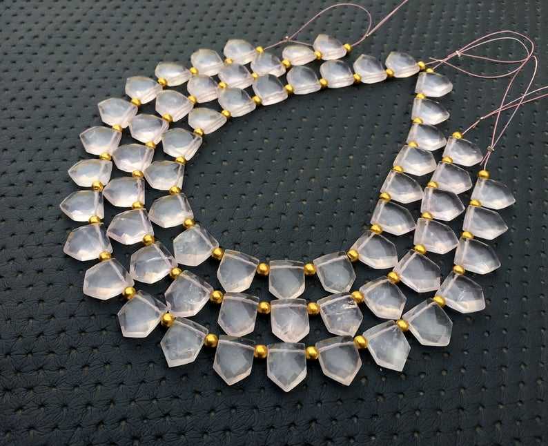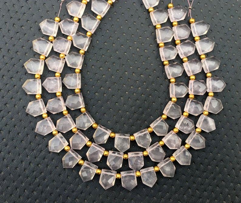 ลูกปัด Briolette 21ชิ้นลูกปัดพลอยควอตซ์ทรงเหลี่ยมเพชรพลอยธรรมชาติ1เส้น