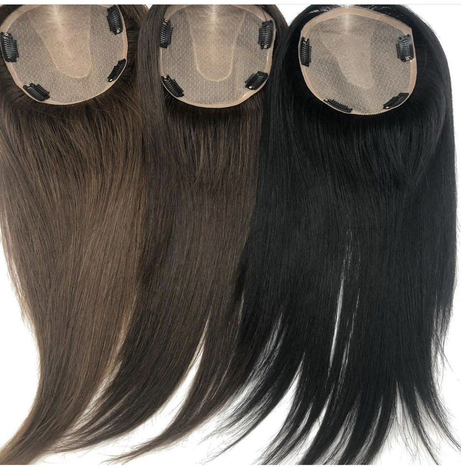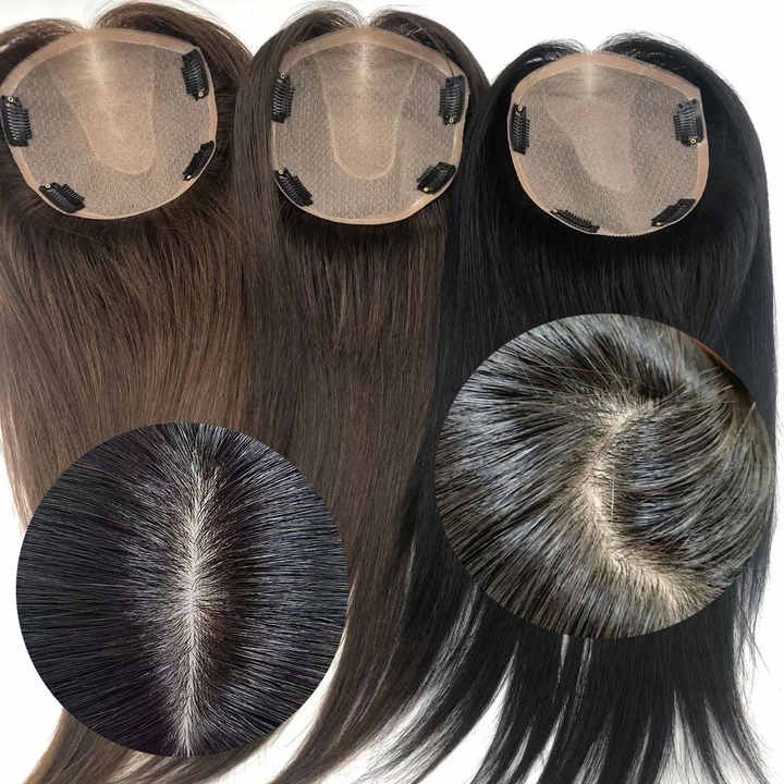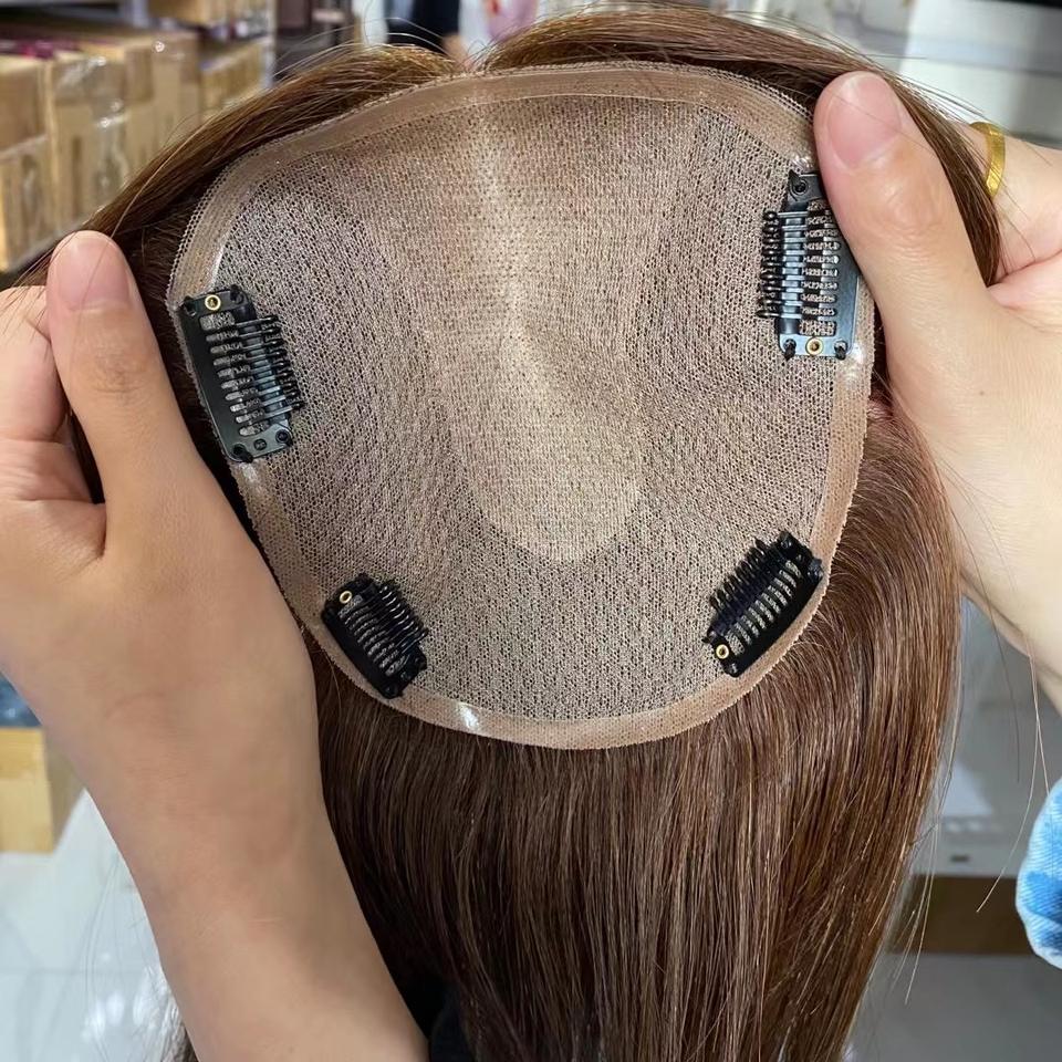 ที่มีคุณภาพสูง100% ยุโรปเวอร์จินมนุษย์ผมหนังกำพร้าชิดสีน้ำตาลเครื่องทำด้วยผ้าไหมฐาน Topper สำหรับผู้หญิง