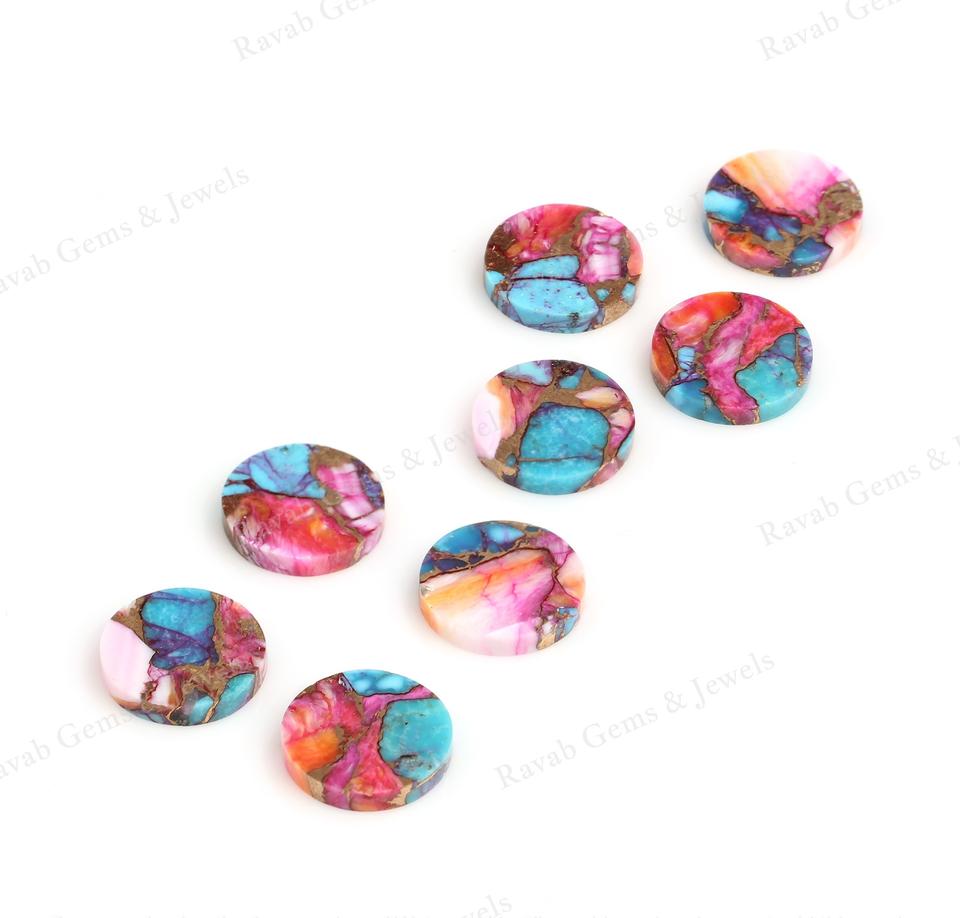 อัญมณีหลวมกลมแบน12มม. สีเทอร์ควอยซ์ทองแดงผสมตามธรรมชาติ