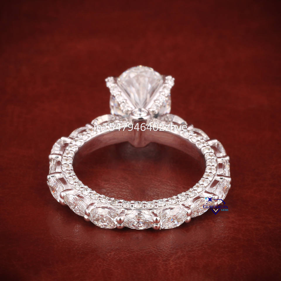 แหวนหมั้นเพชรโมอิสสีทองขาวบริสุทธิ์สำหรับผู้หญิง14KT ความใสระดับสุดยอด