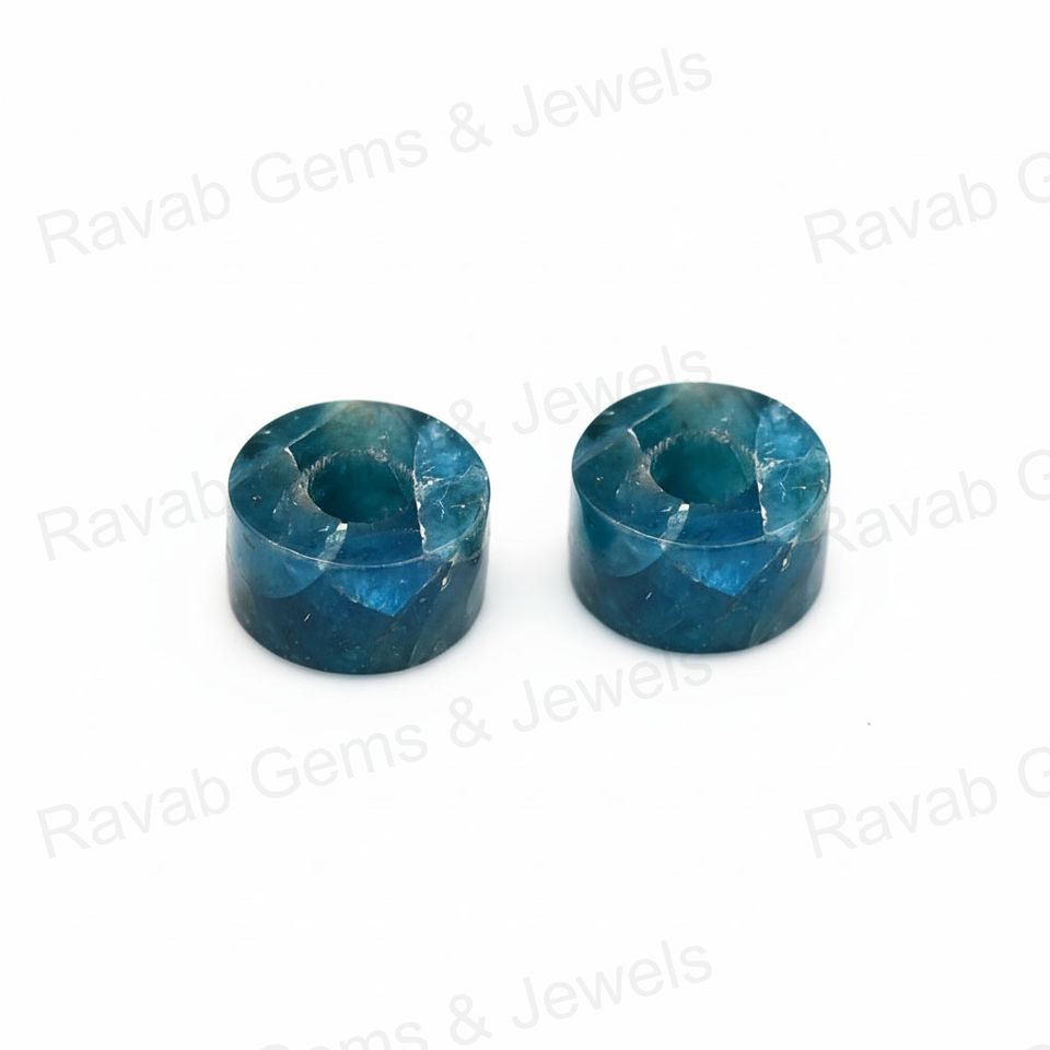 ชื่อสินค้า:ลูกปัดทรงกระบอกแบนทำจากอะพาไทต์และทองแดง ขนาด 14x8 มม. รูใหญ่ 5 มม.