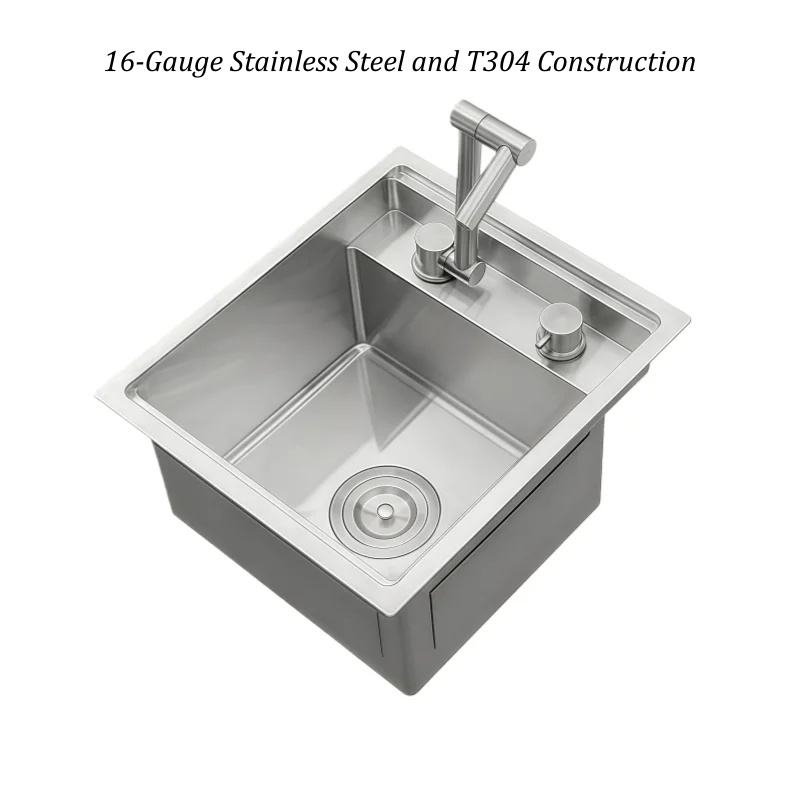อ่างล้างจานครัวสเตนเลสสตีล 304 คุณภาพสูงแบบอ่างเดี่ยว ผิวปัดเงา สำหรับใช้ในครัวเรือน