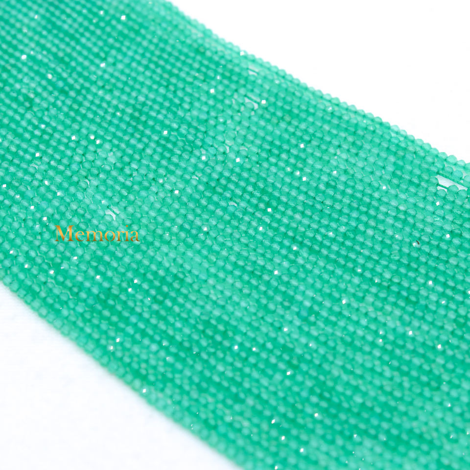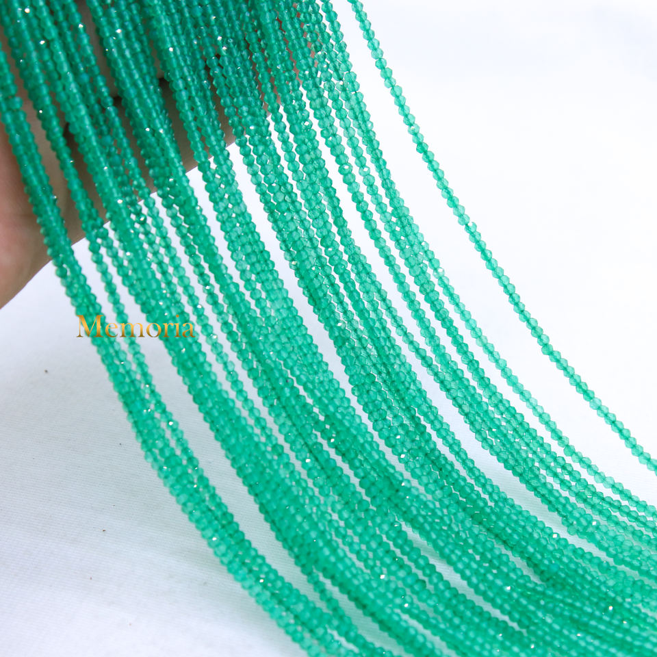 ลูกปัดหินอัญมณีสีเขียวโอนิกซ์เจียระไนขนาด2มม. ธรรมชาติ35เส้นสำหรับทำเครื่องประดับ