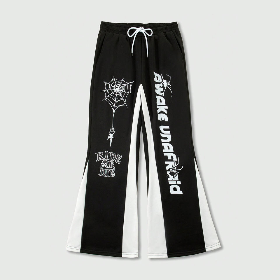 กางเกงขายาวผู้ชายผ้าฟลีซคุณภาพสูง 400 GSM ทรงหลวม สไตล์ลำลอง ขากว้าง ทรงบาน เหมาะสำหรับสตรีทแวร์