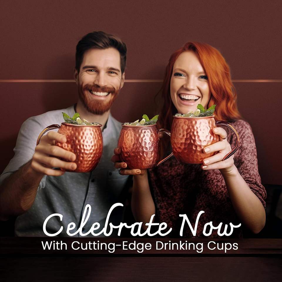 แก้วมอสโกมิวล์ทำจากทองแดงบริสุทธิ์พร้อมที่จับทองแดง