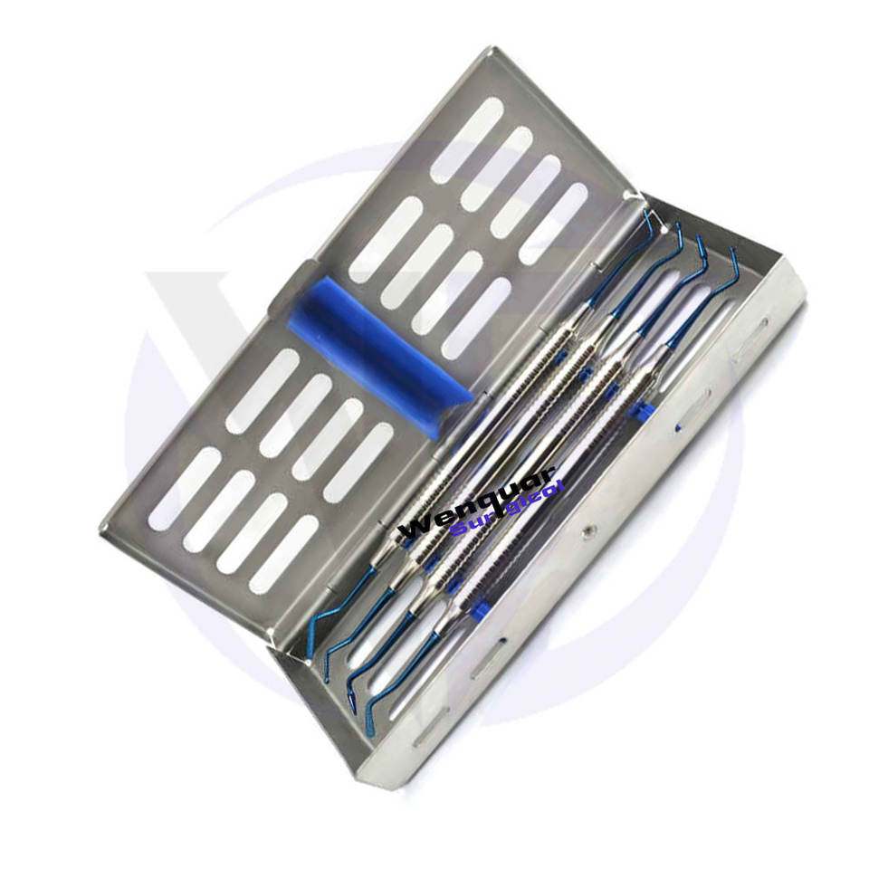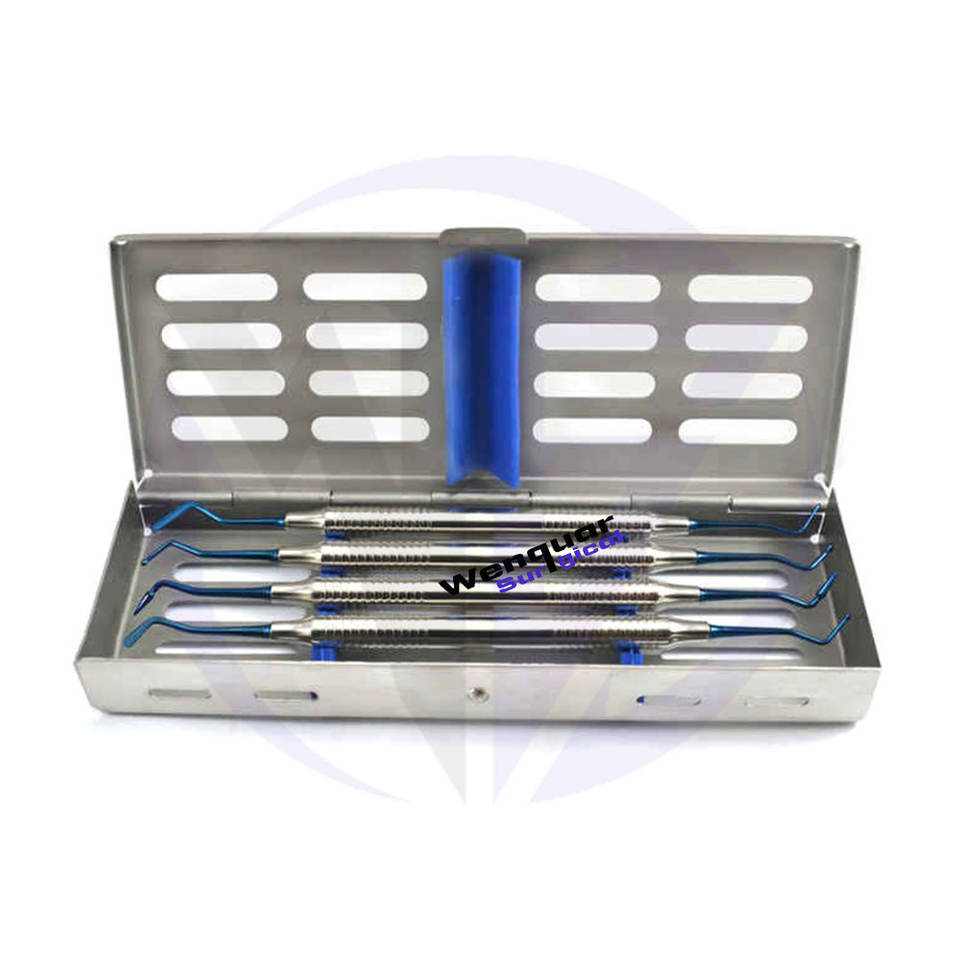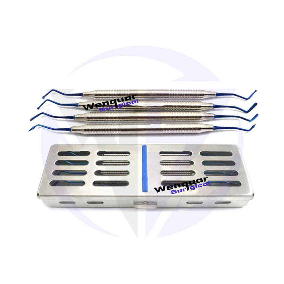 ชุดเครื่องมืออุดฟันคอมโพสิต 4 ชิ้น ปลายสีน้ำเงิน วัสดุสแตนเลส บรรจุในกล่อง สำหรับทำความสะอาดฟัน ยี่ห้อ Wenquar ผลิตด้วยมือ ได้รับมาตรฐาน CE