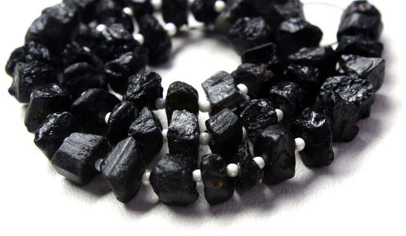 Top Quality 50 Pieces Natural Black Tourmaline Raw Uneven Shape Cetner Drilled Rough Gemstone Wholesale