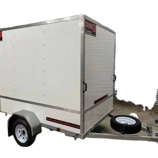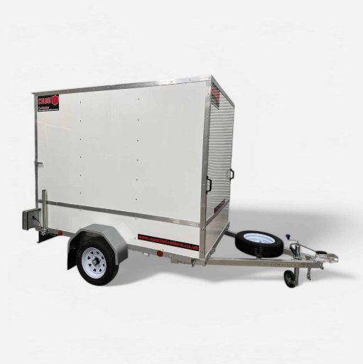 รถพ่วงคิวบ์พลัส 85 ขนาด 8 ฟุต x 5 ฟุต คุณภาพสูง พร้อมความสูงภายใน 6 ฟุต และทางลาดบรรทุกด้านหลัง สีขาว